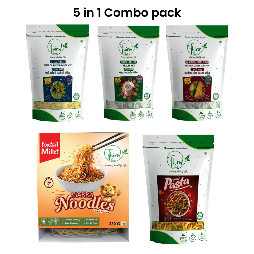 Thiru Foods Healthy Family Combo brings together 5 of our most loved millet-based products—nutritious, tasty, and easy to cook. Perfect for families who want to enjoy wholesome meals every day.